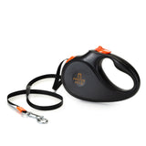 A tangle free retractable leash, lockable switch and tape leash so won't cut or tangle. Product size 6.6"x 4.6" x 1.5" and weights 0.45lbs. For smaller pets.